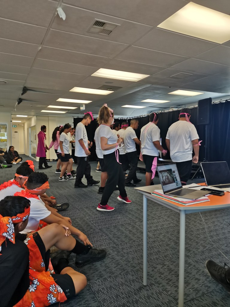 At PASS, they are acknowledged as culturally-located individuals. Students are encouraged to bring their Moana-nui-ā-Kiwatanga or their ‘Polynesian-ness’ to school. When Māori and Pasifika enter mainstream schools, they often have to leave their fa’a Pasefika ways outside the school gates. However, at PASS, the Pasefika way is the starting point of each day through Tū Tangata (physical conditioning), the sharing of food, family pese (praise), lotu (worship), and talanoaga (family discussions/encouragement). It was also a part of our whakatau process.