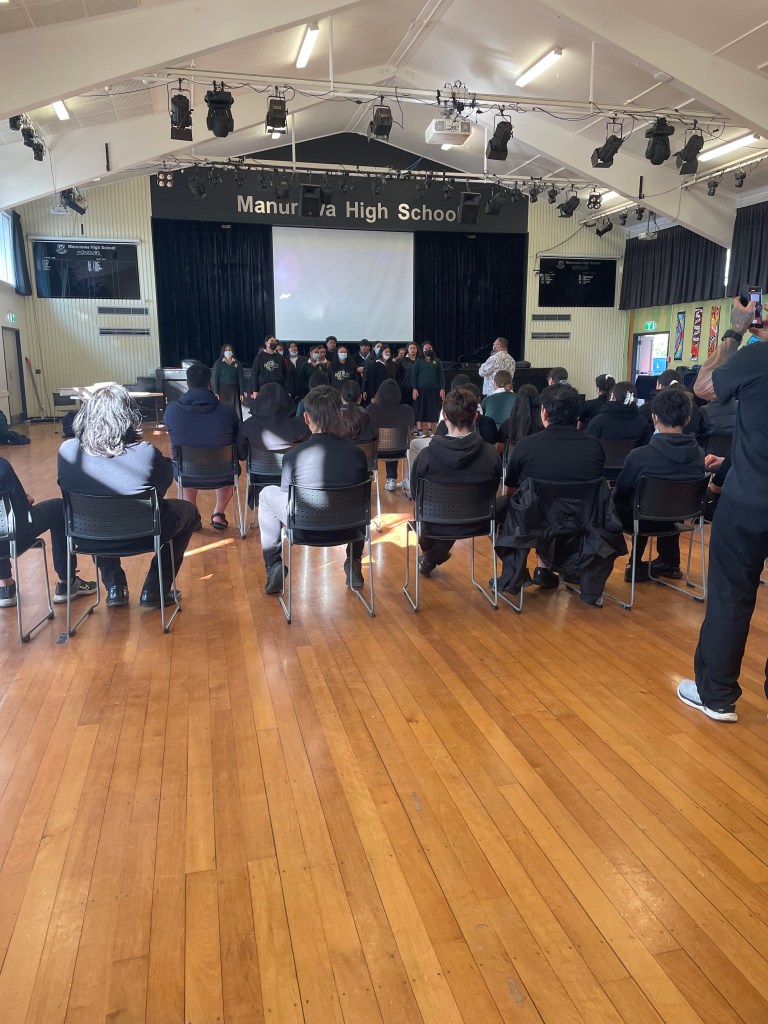 The number of students seen walking into the school gates were impressive. Manurewa High School has approximately 2,500 students enrolled at their kura, the majority of whom are Samoan, with Māori being the second largest ethnic group of the school’s student body (Manurewa High School | Education Review Office, 2018). Near the entrance to the school is a beautifully carved and decorated wharenui named after our ancestral place of origin, Rangiaatea. Rangiaatea’s welcoming raparapa directs me towards the reception area where I am met by Mrs. Sime and Whaea Ngāhuia and who invited me to the school hall to join their weekly 40 minute Ako Connect group session. When the bell rang, it was not a literal bell, but beautiful student voices serenading the school with a Māori song. I have never heard a school bell like that. I wondered if that got annoying after hearing it 5-6 times a day. Nonetheless, my first impressions were that te reo Māori, and kaupapa Māori were strong in this school.
