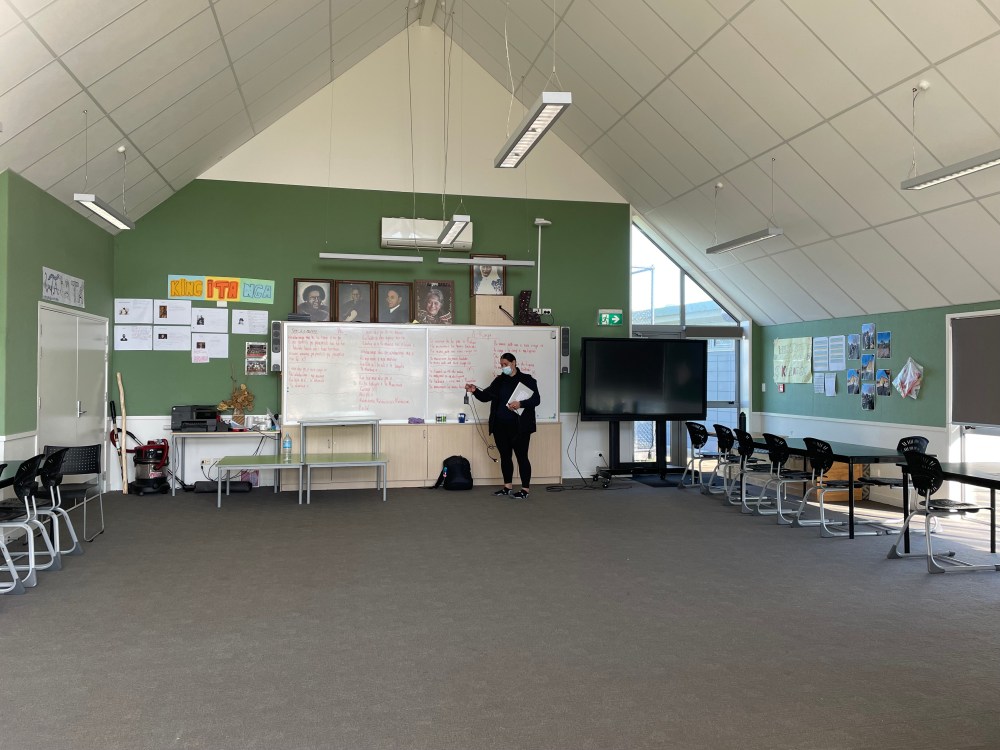 Uncle Bronny shares his class with three other language teachers, which causes issues for ākonga. For instance, his new Year 9 class arrived 15 minutes because their class was changed.