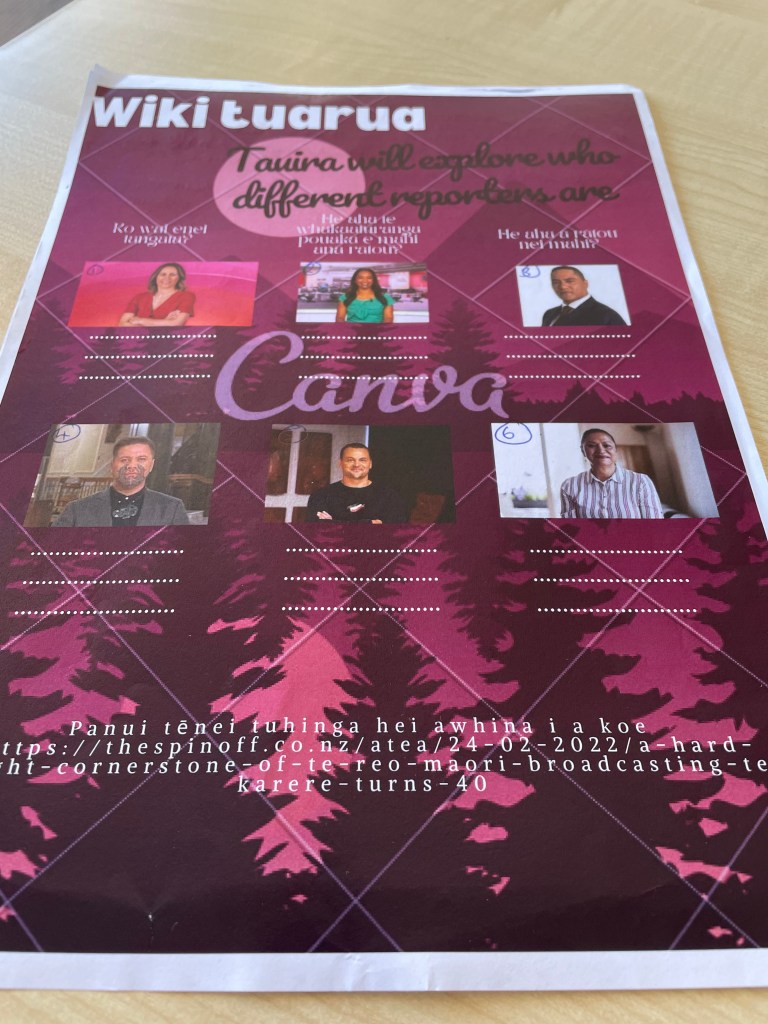 - Students are directed to go to their online learning platform (Microsoft Teams) where they are tasked with choosing a structure and writing it in their pukapuka.