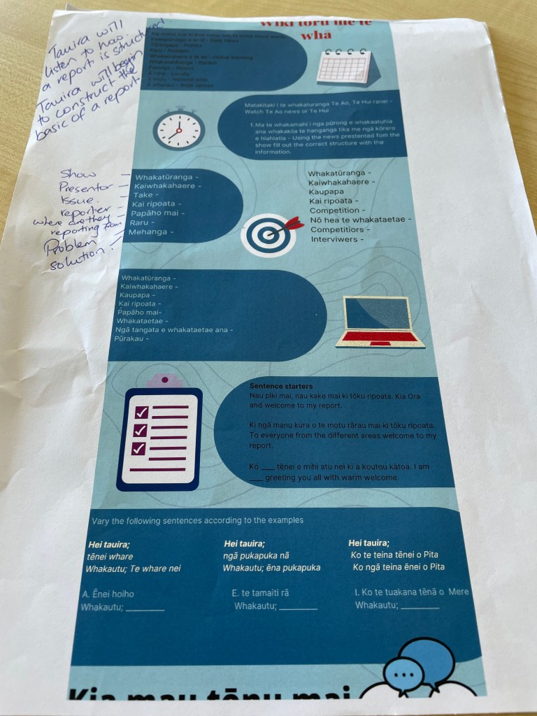 He Pūtea Reo: a revision book for School Certificate (Cormack, 1984) – although it is old, it is still gold for Whaea Ngāhuia. she uses Ian Cormack’s He Pūtea Reo more often than others, as the sentence structures are simpler and easier to follow;