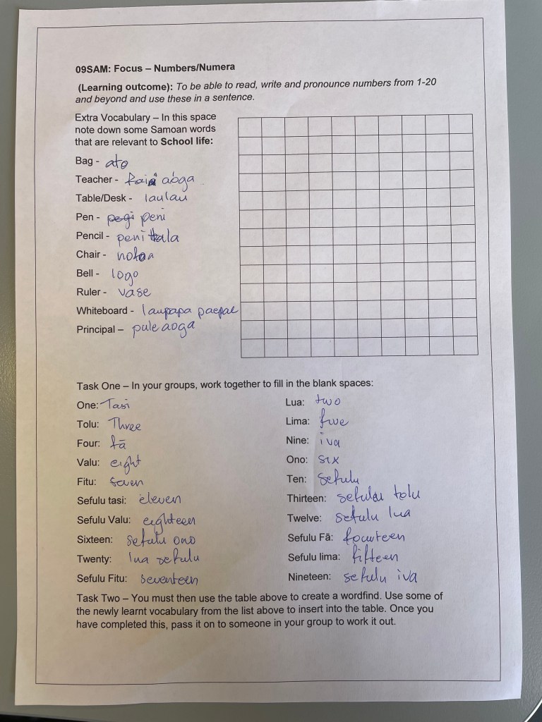 Like me, Uncle Bronny plays music in the background, which helps to set a chill vibe for the class. His ākonga, I observed, were engaged in all the activities. There were a few ākonga who could speak or understand gagana Sāmoa (or both). The ones who did not speak or understand, showed a hunger for their mother tongue.